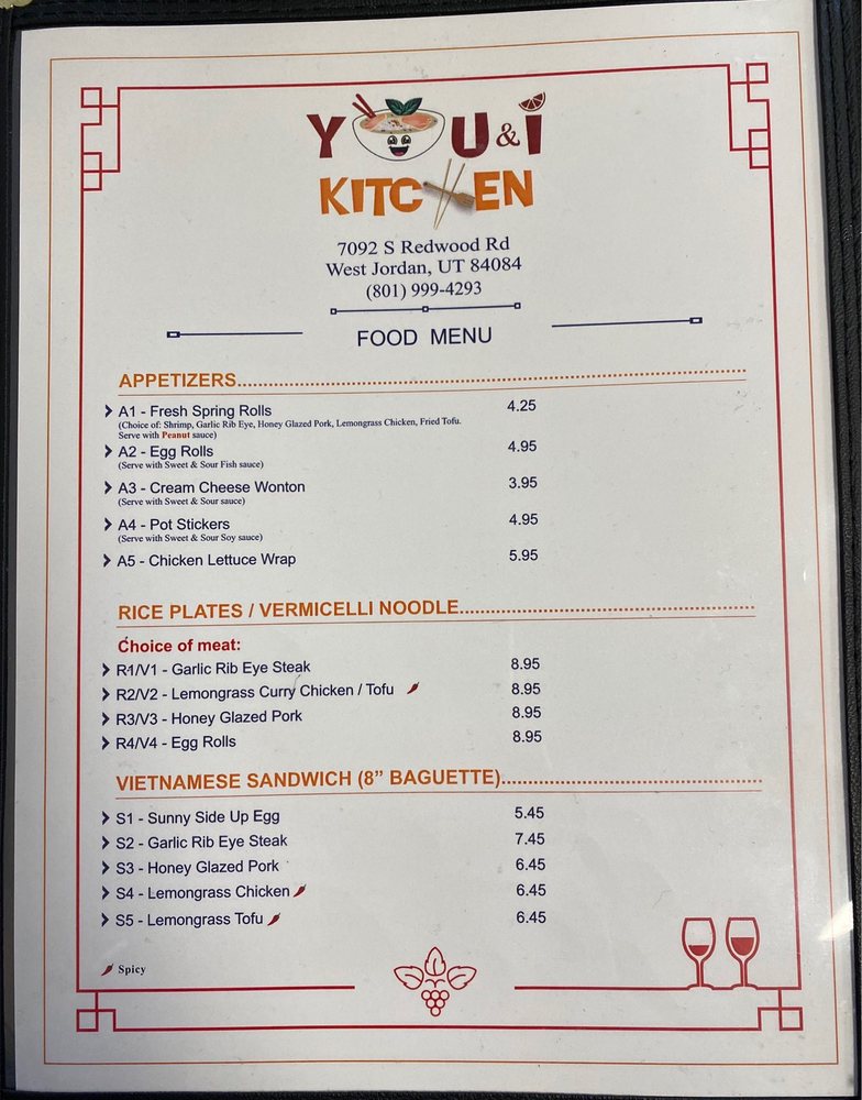 Welcome to You & I Kitchen, a delightful culinary gem nestled in West Jordan, UT, specializing in Vietnamese cuisine with a modern twist. This restaurant expertly curates a diverse menu featuring sandwiches and noodles, ideal for both casual diners and food enthusiasts alike.